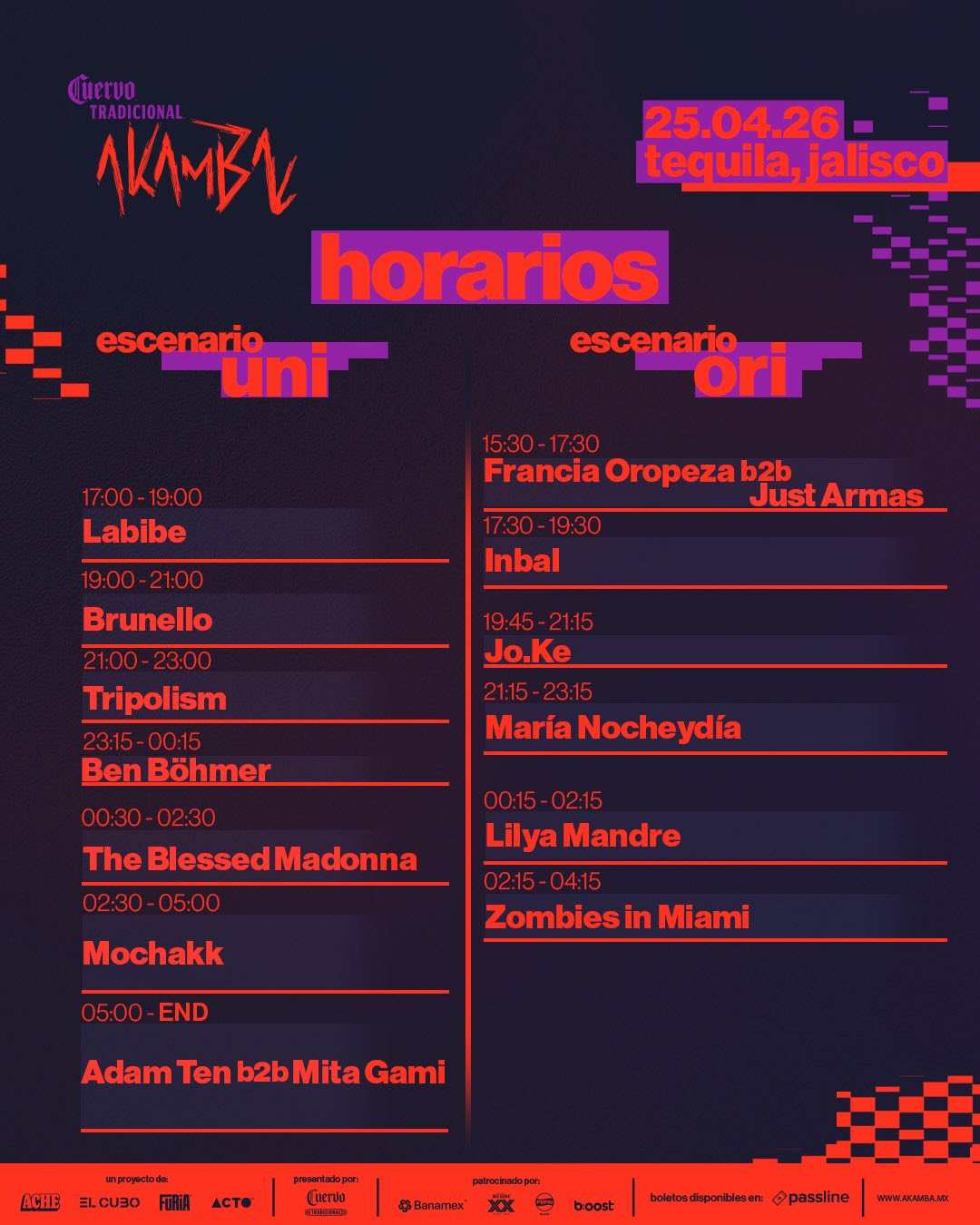 El festival cuenta con distintos tipos de acceso que van desde la entrada general, la experiencia a bordo del Akamba Express –con DJ’s y actos en vivo durante el trayecto– y paquetes en zonas VIP backstage, ubicadas sobre el escenario, con servicios preferentes.