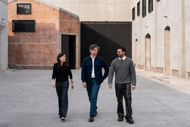 Boletín: Prensa Feria Material / Ariadna Cuevas. Foto principal - de izq. a der.: Brett Schultz, cofundador, socio y director de Material; Isa Castilla, socia y directora de desarrollo; y Marcos Ruiz, socio y director de programación. Crédito: Narrativo Photo.