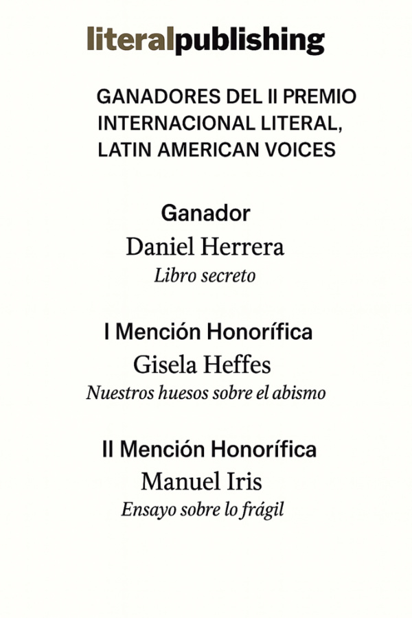 "Libro secreto", de Daniel Herrera Cepo, gana el Segundo Premio Internacional de Literatura en Español de la revista Literal